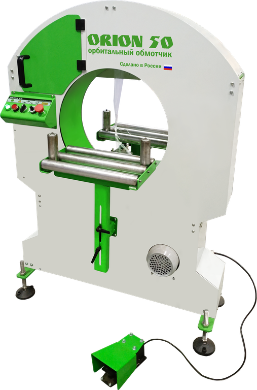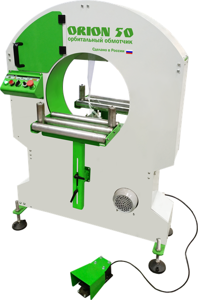 в стрейч-пленку ORION 50 (Россия) с автоматической заправкой и обрезкой пленки.
